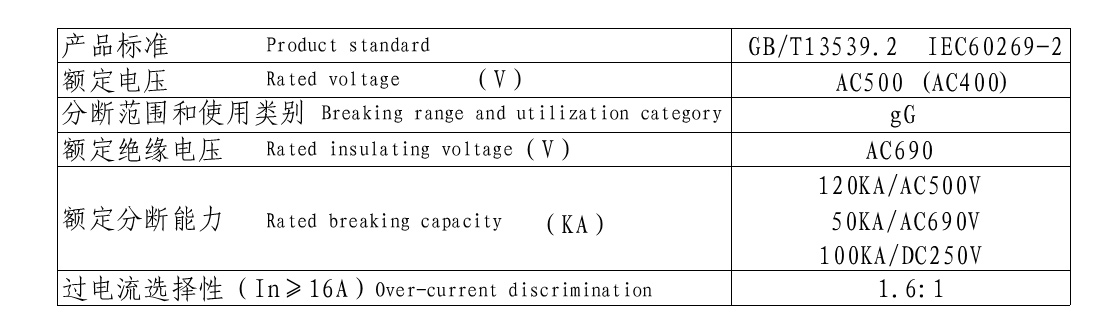 符合GB13539.2、IEC60269-2-1標(biāo)準(zhǔn)中的規(guī)定。