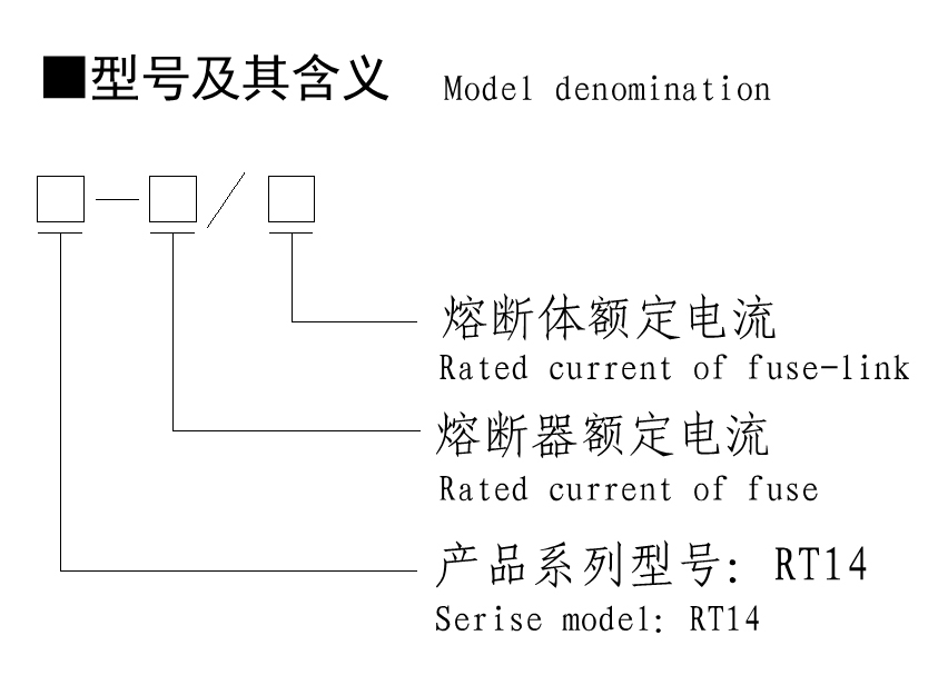 Series RT14 fuses with cylindrical caps are applicable in distribution units with rated voltage up of 380V a. c. and rated current up to 100A for overload and short-circuit protection. The series consists of fuse-links with cylindrical caps of high rupturing capacity and fuse holders